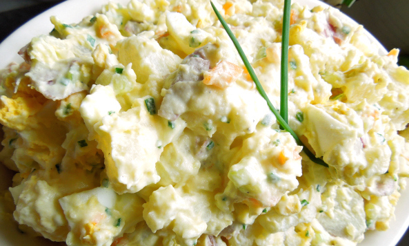 Potato salad is deceivingly simple: boiled potatoes and eggs, dressing, some onion, celery and salt. Yet despite its basicness, this dish inspires exceptional adulation. A couple of years ago, Zack Brown from Columbus, Ohio, launched a Kickstarter campaign to raise $10 to make a potato salad. It was a joke with his friends ahead of a Fourth of July get-together, but within a day he’d reached 10 times his goal. By the time the campaign ended a month later it had raised $55,492. Good timing and the right amount of tongue-in-cheek satire helped it become a viral internet phenomenon, but it’s also a testament to the popularity of potato salad. Who wouldn’t want to pitch in a buck to help a guy whip up a bowl of this delicious, creamy summertime concoction?
